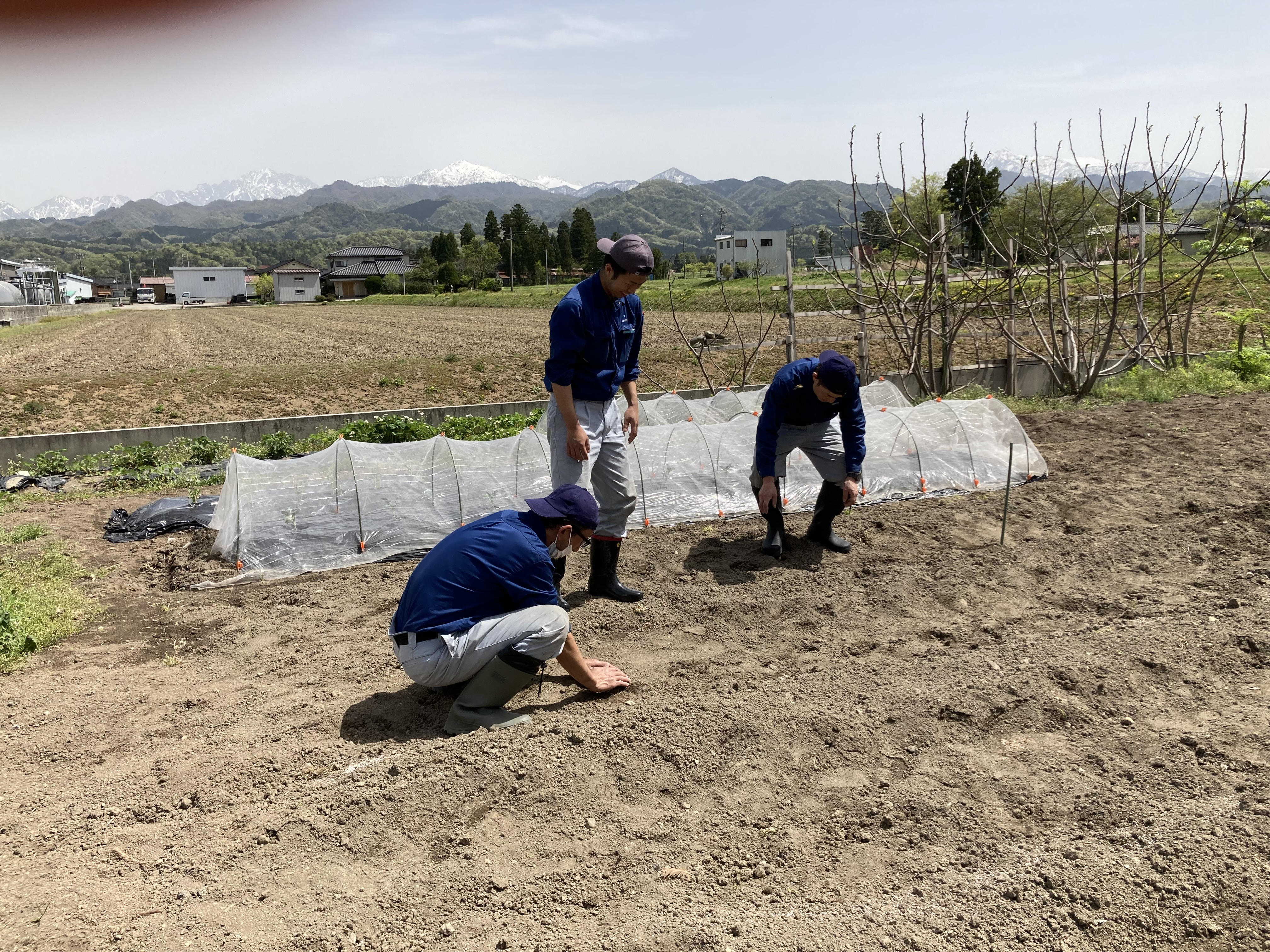 4/14の昼休憩中に、ジャガイモの種芋を植え付けしました。